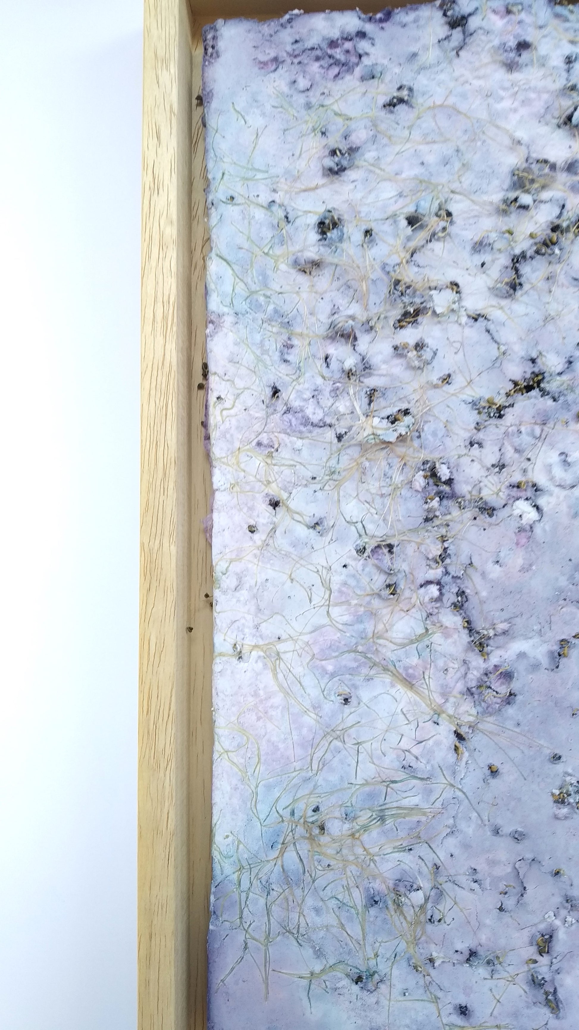 Papier, gips, kalk, zaden, wortels, inkt, acryl