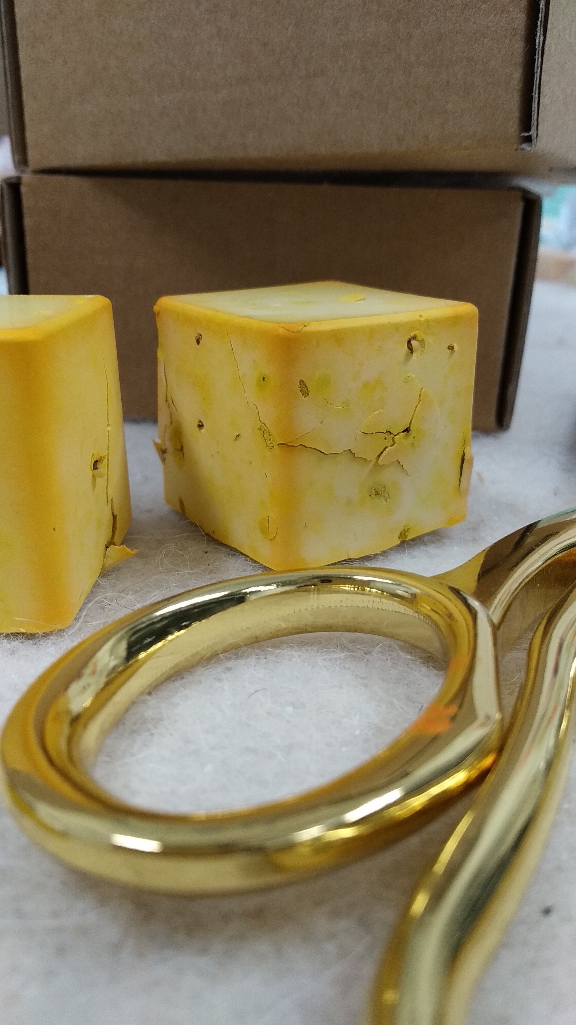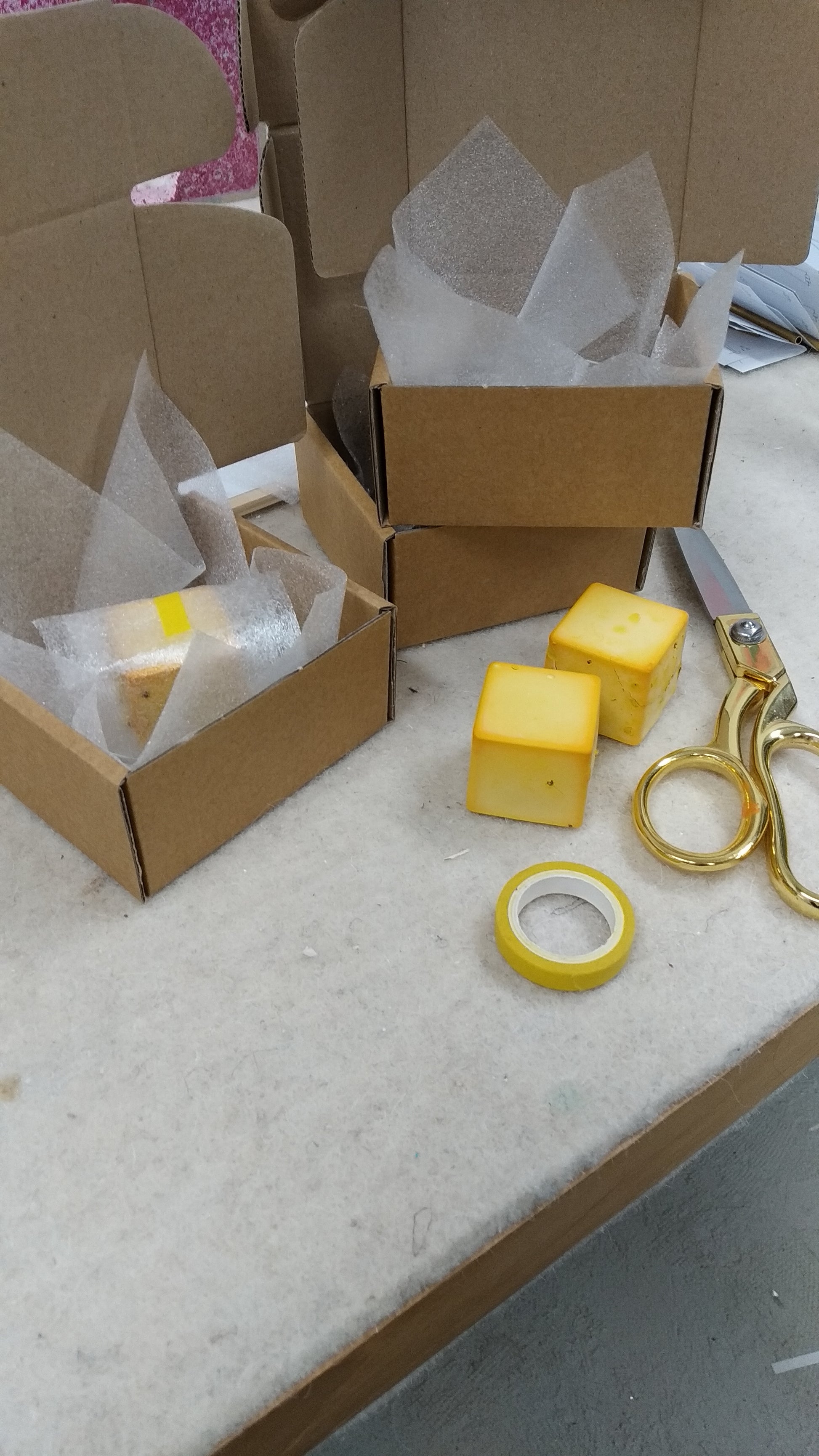 Afmeting blokje 3x3cm, kleur geel.